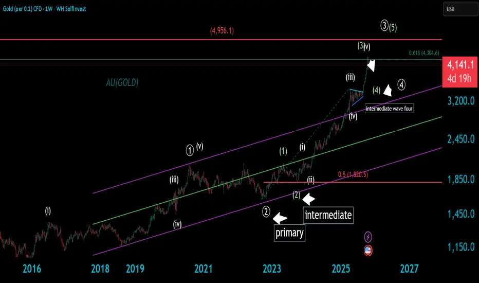 As expected earlier Gold shoot over 4308 but ultimately fell below it ,next day we had got a good green candle however volume was not huge probably indicating local buying. This chart is weekly time frame not shown that. It seems C wave of correction is in progress. Intermediate 3rd wave is completed around 4308 now 4 th wave is in progress. Still Gold has left with primary 3 rd and 4th wave. This on going intermediate 4 th wave might take time.we can see intermediate 2nd wave had taken several weeks to complete and had retraced 50 percent of corresponding 1st wave. Let us observe how this 4th wave unfolds. Please go through my other posts of Gold and see their accuracy.
