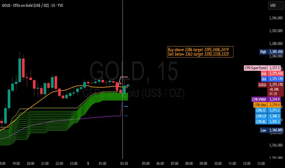 Entry: Buy Gold (XAU/USD) above $3,386 (only after a 1-hour candle closes above this level).