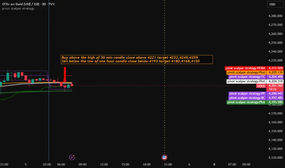 Below the breakout candle low (or 10–15 points below 4221 based on volatility).