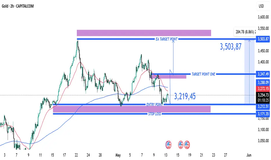 Price appears to be bouncing off a support zone near 3,212–3,219, indicating a potential reversal.