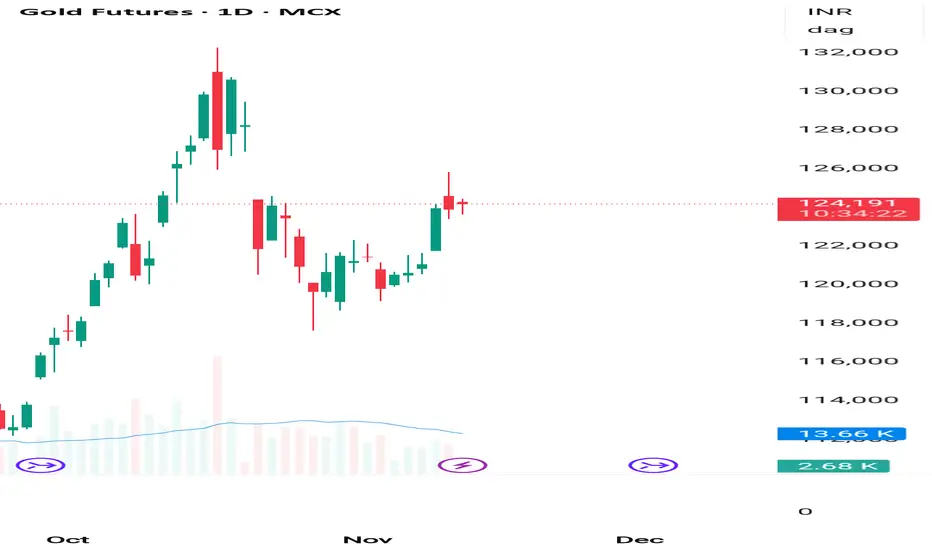 - Price Action: Gold is holding firm above ₹124,000, showing steady bullish momentum.