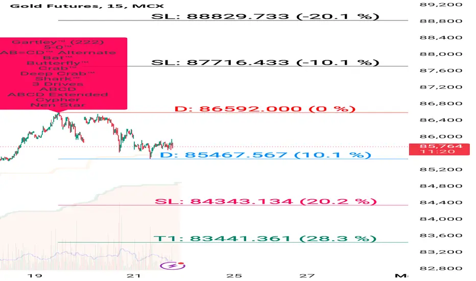 If price going upside/ downside then then buy or sell levels appear on Chart ( Automatically show when price reach any reversal zone of harmonic projection pattern based .