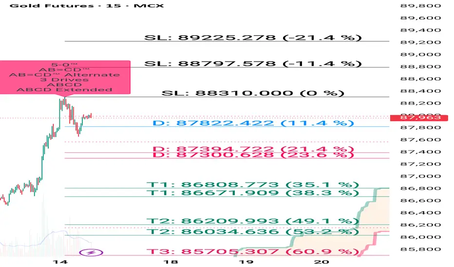 If price going upside/ downside then then buy or sell levels appear on Chart ( Automatically show when price reach any reversal zone of harmonic projection pattern based .