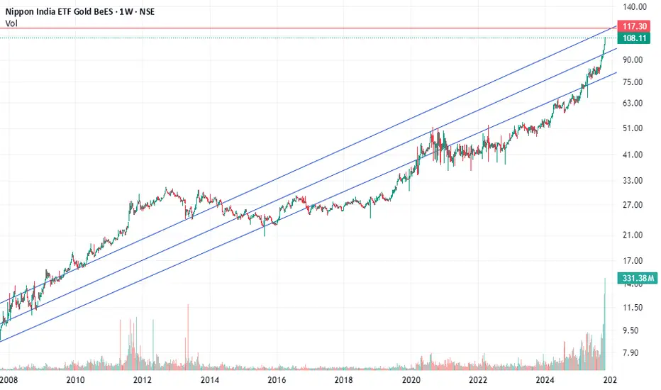 As per trendlines, looks like we will get a top from 6 to 9% from current levels. gold will have a top around the level marked in red trendline.
