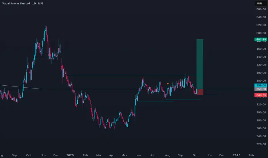 Gopal Snacks Ltd is currently trading at around ₹348.8, having shown some recovery from lower levels over the last few months. The stock has a 52-week high of ₹520 and a low of ₹255.9, indicating significant volatility during the year. In the past week, the price remained largely stable, with minor gains, and the one-month performance is up by nearly 10%.
