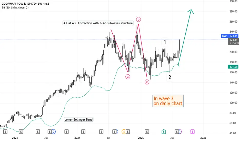 The script is currently in a 5 wave impulse upside after completing a flat 3-3-5 correction. This impulse is supposed to make a higher high. On daily chart, in a 3rd wave.