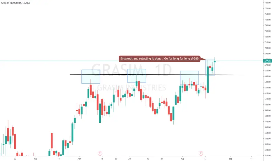 Breakout and retesting is done . Go for long for long @680