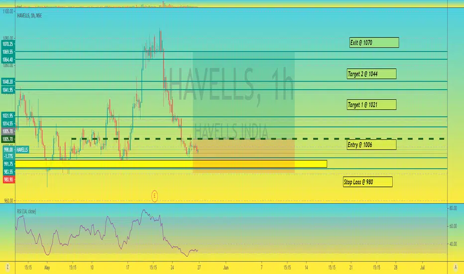 Long Call can be made for HAVELLS as its in Support, you can also see the RSI divergence.