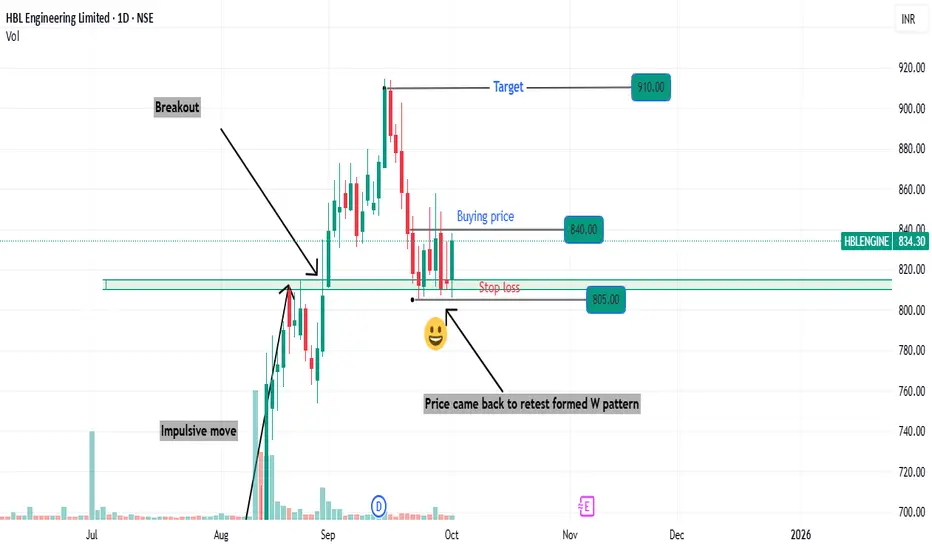 This is in healthy up-trend. Shown the breakout on 01 Sep 2025, and again tested the previous levels, formed multiple bullish candles (24 Sep 2025 and 01 Oct 2025), also formed "W" Pattern at previous breakout levels. If we consider the blending of candles from 23 sep 2025 to 01 Oct 2025 it shows the bullish candles