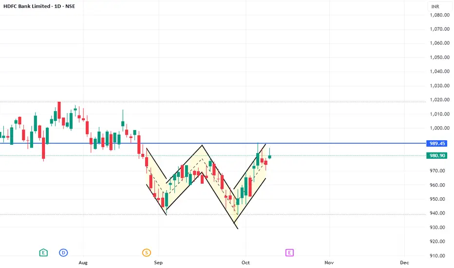 Failure: If the price rejects the Neckline severely and breaks below the second bottom's low (around ₹935), the bullish pattern is invalidated, and the downtrend would likely resume.