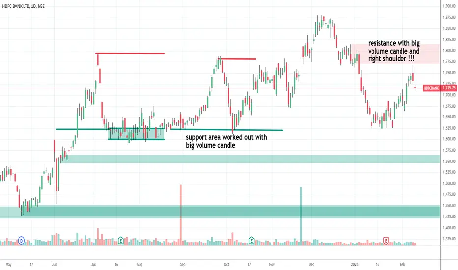 HDFC bank was number 1 safe investments with sure profits due to MSCI money flow, It worked out well. support area with big volume candle given second opportunity to enter long. But now price is forming right shoulder for head and shoulder pattern and price is below resistance area with same big volume candle indicating bearish view now. It might re test support and based on action at previous support only we can say will price rise or not again. so its better to book profits and stay away from HDFC for now.