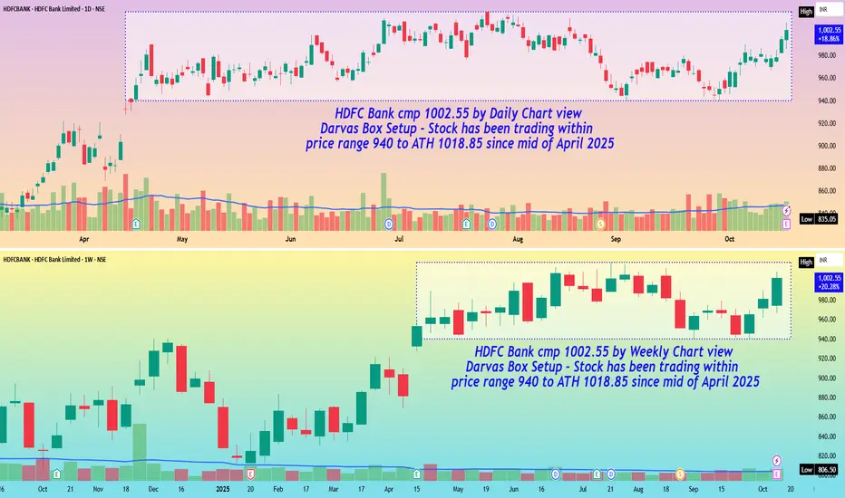 HDFC Bank cmp 1002.55 by Daily and Weekly Chart view