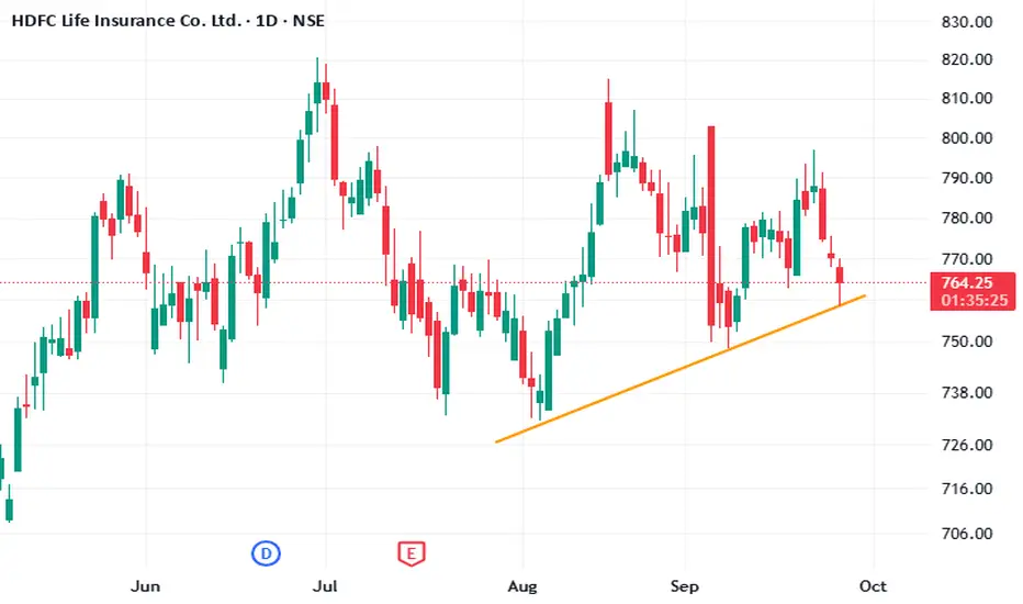 Look at HDFC LIFE daily chart pattern. If respect trend line, i am expecting 3 to 5 percent gain in short term. Stop loss if price close below trend line.