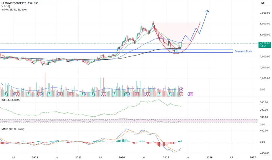 Stock has experienced a significant downtrend and seems to be bouncing off 3500-3600 levels