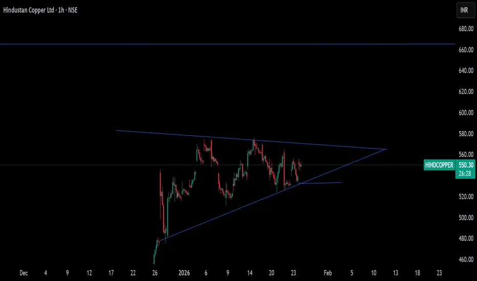 Nifty Metals are in a cyclical bull run. HindCopper has taken a perfect support in a bullish channel. One can plan a long position with an SL below the channel, targetting ATH levels of 670.