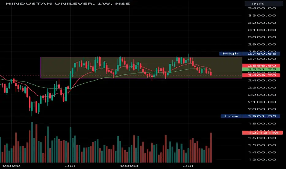 This FMCG giant is consolidating in the range of 2428-2723 from a long time. It is near the support levels. If there is a close below 2428, there can be a new downside in this counter. But if it sustains 2428 on closing basis then we may see 2723 again