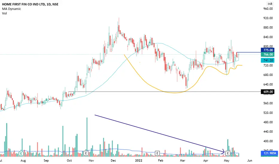 HomeFirst is exhibiting volatility contraction near 50MA after its run up post the IPO base breakout.