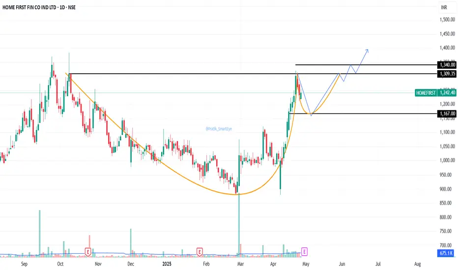Home First: Cup & Handle pattern in formation. Cup formed at 1309. Handle in progress.