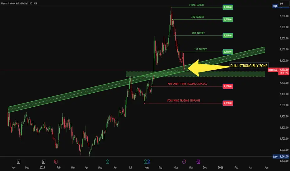 Hyundai Motors India reach at dual strong buy zone area to consider as a long trade, use your skill as well knowledge to enter in a trade not guaranteed return. Do your own research than make a trade. But technically and fundamentally Hyundai is in good spot to consider as a long trade.