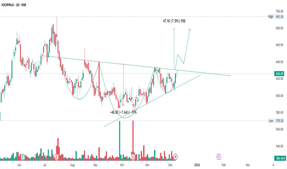 ICICIPRULI – IHNS + Cup & Handle Confluence Breakout Setup