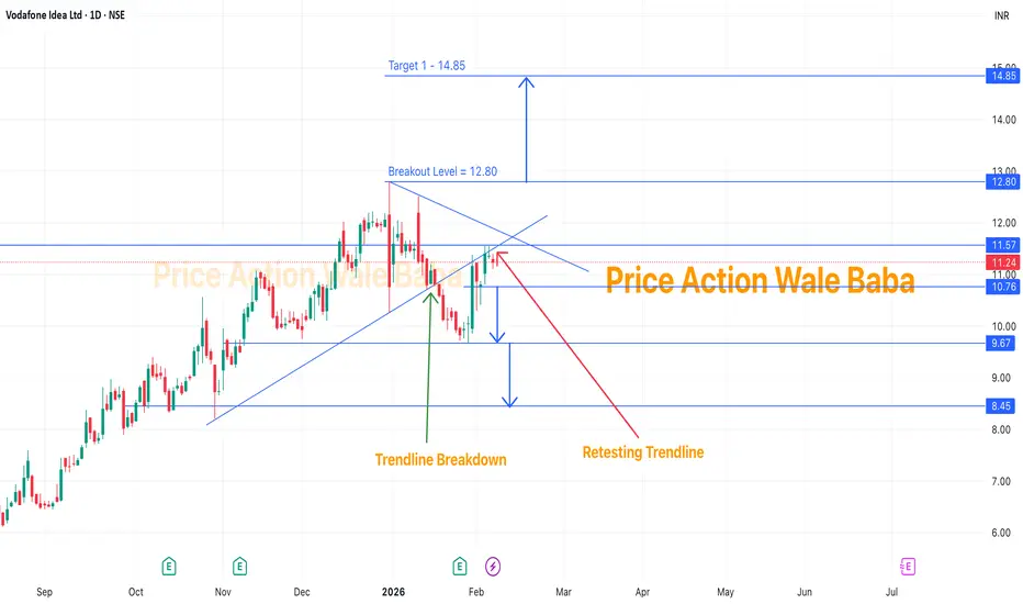 - Vodafone idea was consolidating and then give the breakdown from rising channel or bearish flag.