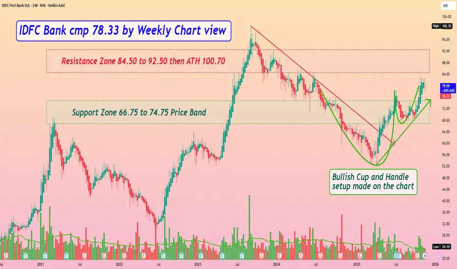 IDFC Bank cmp 78.33 by Weekly Chart view