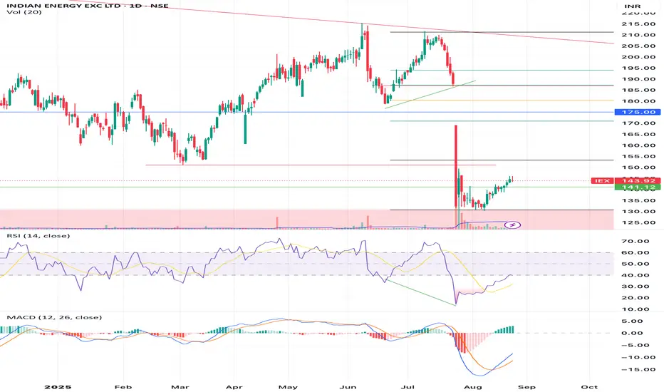 • After the fall, it stabilized around ₹140–141 zone, which is acting as immediate support.