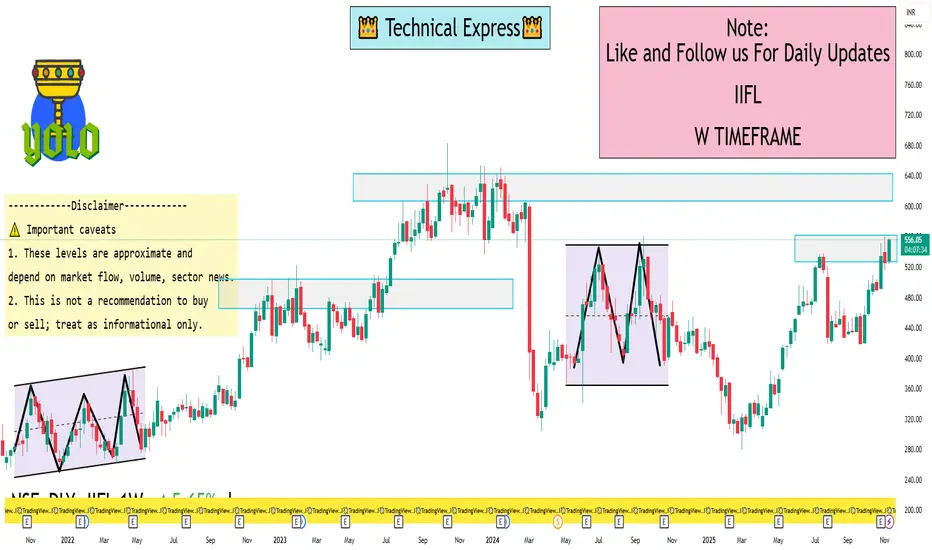 Resistance zone: around ₹ 555-560. (near the recent high end of the range)