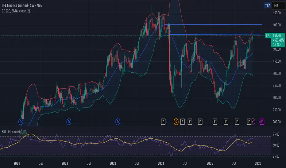 IIFL is ready to move up, one can buy for the targets of 603,645 with the stop loss of 530.