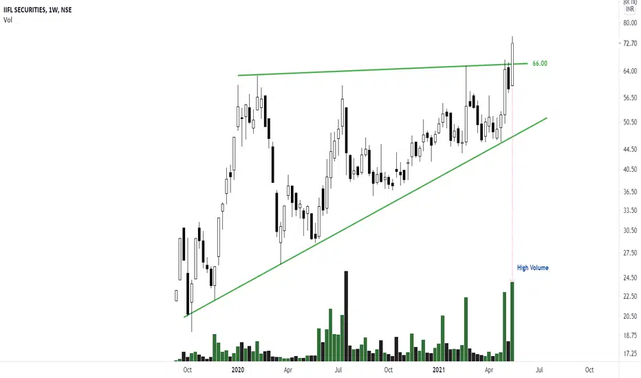 * Ascending triangle chart pattern breakout with high volume in weekly chart in IIFL SECURITES .
