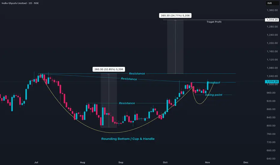 Fundamentally, India Glycols has demonstrated robust financial performance with growth in revenue and profitability, making the current price attractive for medium to long-term investors. Technical indicators point to a continuation of the uptrend barring any major market corrections, with immediate support near ₹960 and resistance at ₹1,050–₹1,070.