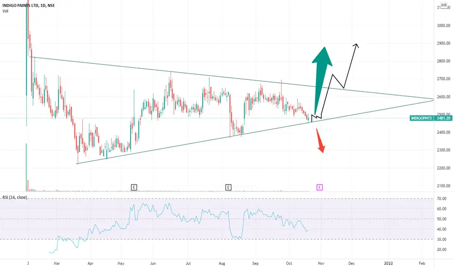 Indigo paints share prices have been trading within the triangle pattern. Add the stock to your watch list. It is trading near the support line. Good to enter here with a stop loss just below the support line. Or, wait for a breakout to trade this pattern.