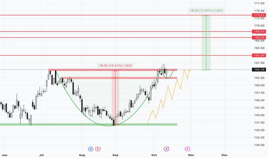 Price sustaining near its major resistance of 155 and gave a retest today near 152 level. If breaks out and sustains 1hour above 156 can consider for long. Following a Cup and Handle pattern with Higher Highs intact from recent September lows.