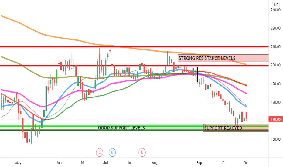 ITC daily analysis , 20 DMA 178, 50DMA 188, 100 DMA 190, 200 DMA 195.