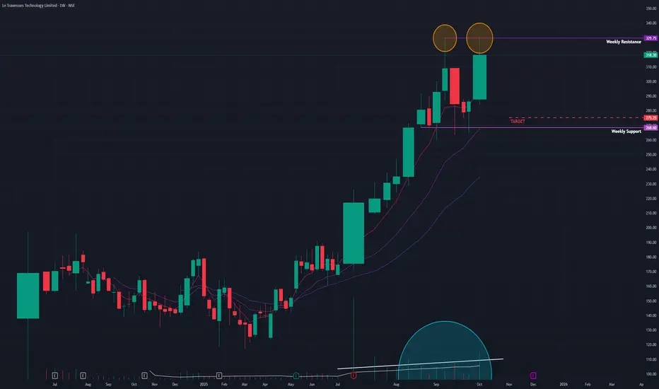 - Bearish Trigger: A decisive close below the range's support would confirm the Double-Top pattern, suggesting the bullish momentum has faded and a correction towards the ₹275 level could be imminent.