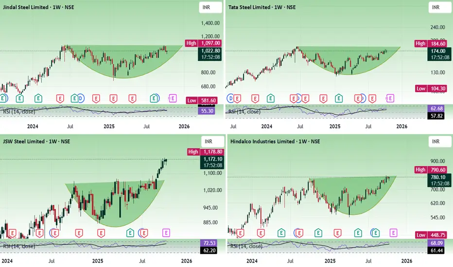 As Nifty is gaining bullish strength, I took the metal sector stocks to do an analysis and found a similar pattern formation. The pattern I found is a rounding bottom, which is a bullish pattern.