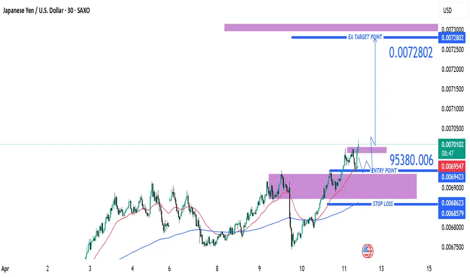 "JPY/USD Long Trade Setup – Breakout Retest Toward 0.0072802 (April 11, 2025)"