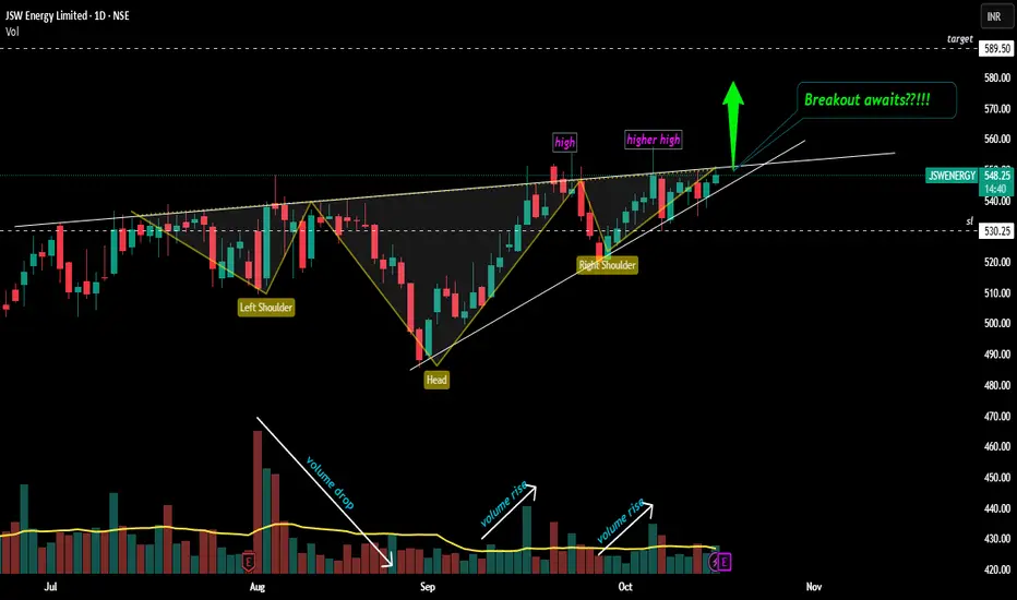 JSWENERGY is forming a perfect inverted head and shoulders pattern with perfect volume levels,making highs and higher highs.