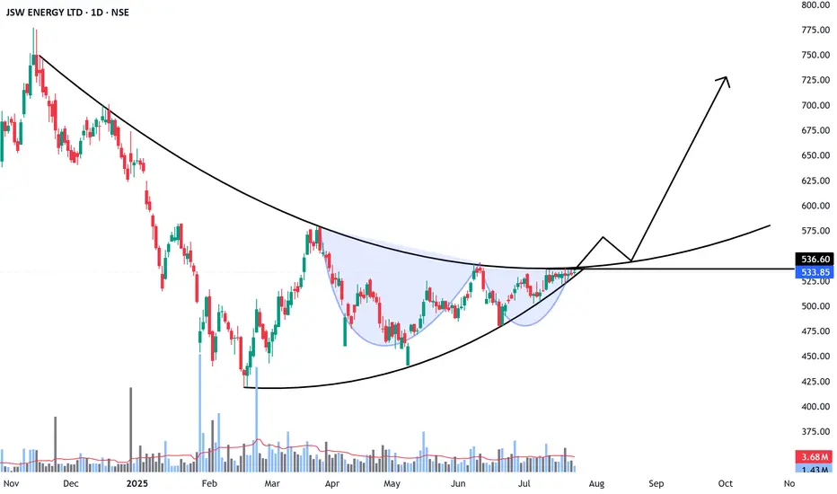 - Neckline: ₹536.60 — price is at ₹533.85, very close to breakout.