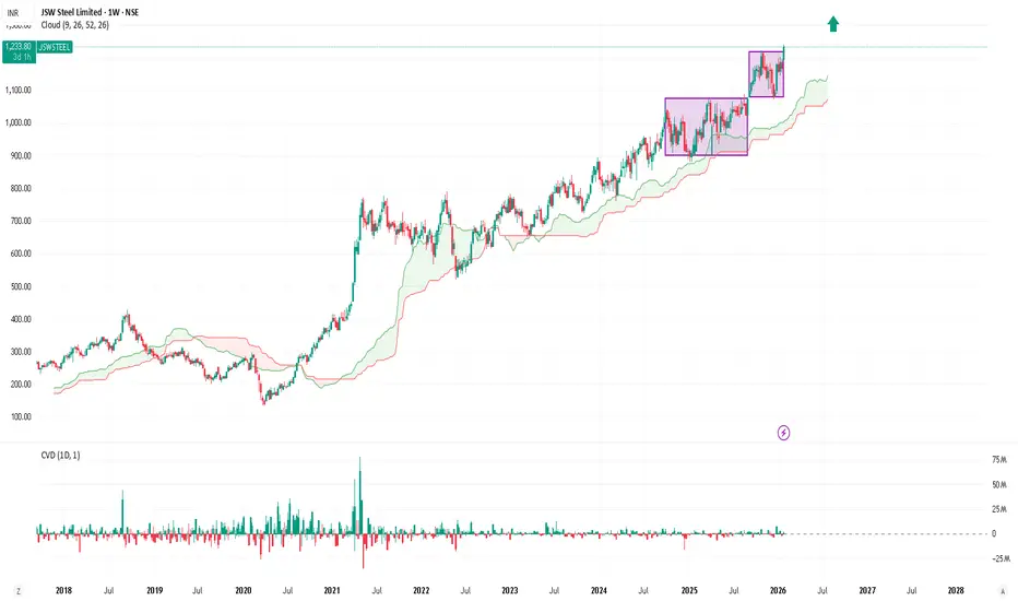 Price broke out above ₹1160–1180 multi-week range
