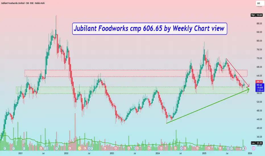 Jubilant Foodworks cmp 606.65 by Weekly Chart view