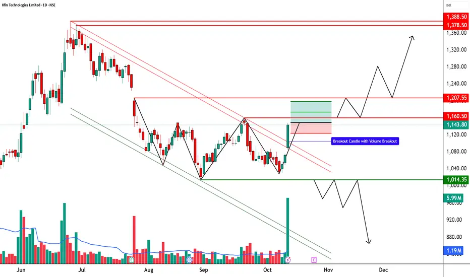 KFin Technologies Ltd. has recently shown a remarkable shift in momentum, breaking out from its prolonged consolidation phase. The stock has moved decisively from its base near ₹1,018, signaling renewed buying interest and accumulation by institutional players. The breakout candle, accompanied by a strong surge in volume, positions KFin Technologies as one of the most promising short-term bullish setups in the current market structure.