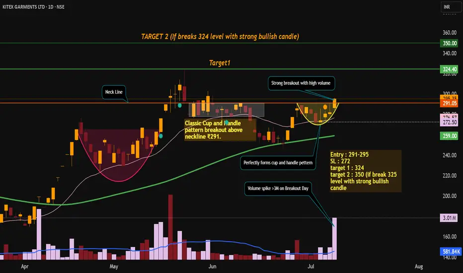KITEX GARMENTS has delivered a volume-backed breakout from a bullish cup & handle pattern. The technicals are aligned with improving fundamentals, making this a high-probability swing trade setup.