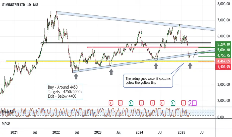 The setup goes weak if the price sustains below 4400 for a couple of days. In given conditions, the strategy should include Hedging tools for better coverage.