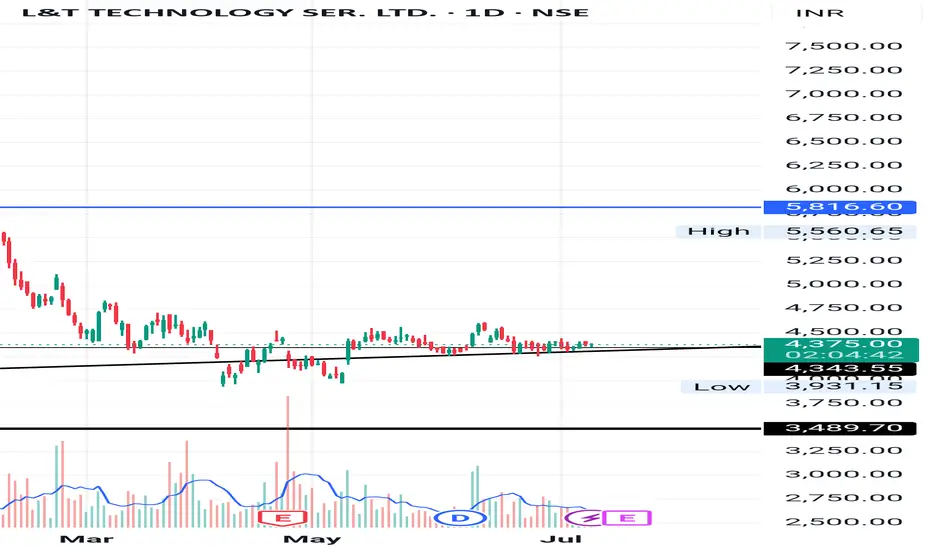 LTTS is consolidating. And its near to 2 resistance which is breaking point. There are chances that, it might create sudden up movement. You can keep it in watchlist