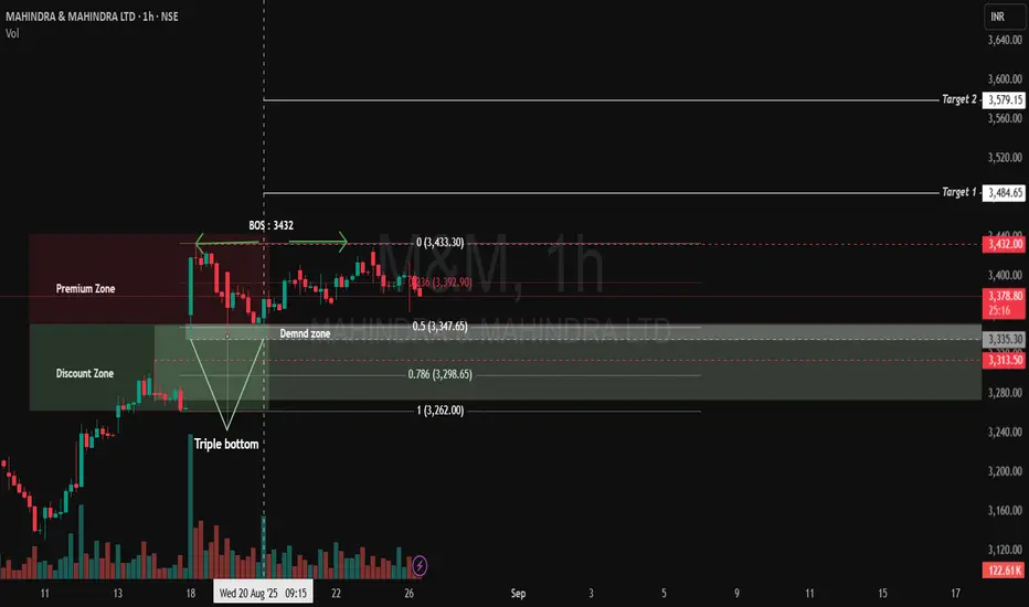 GST cuts are a strong fundamental trigger. Buying near ₹3,360–₹3,385 with a medium-term target of ₹3,500–₹3,600, and a stop loss below ₹3,320, is a favorable trading strategy for M&M amid these cues.