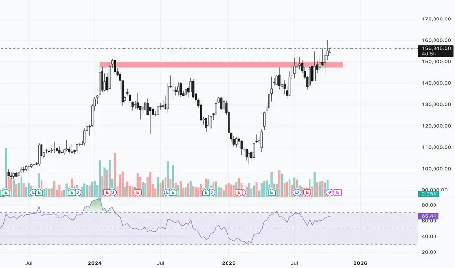 The stock has broken out above the all time high resistance and major psychological level of 150000 and is sustaining above the zone. A long position can be considered around 156500 zone.