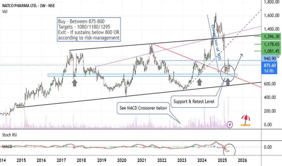 The stock price dropped 50% between September 2024 and March 2025. In recent days, it has been consolidating near the 800 levels, which is acting as a support zone, as shown on the chart.