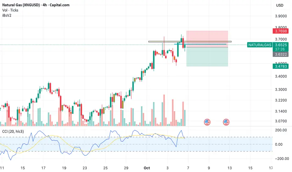 Natural Gas has rallied sharply over the last few sessions, but the 4-hour chart reveals critical fatigue near the 3.65–3.75 resistance band. This zone aligns with previous supply pockets and the upper boundary of the last major distribution phase.