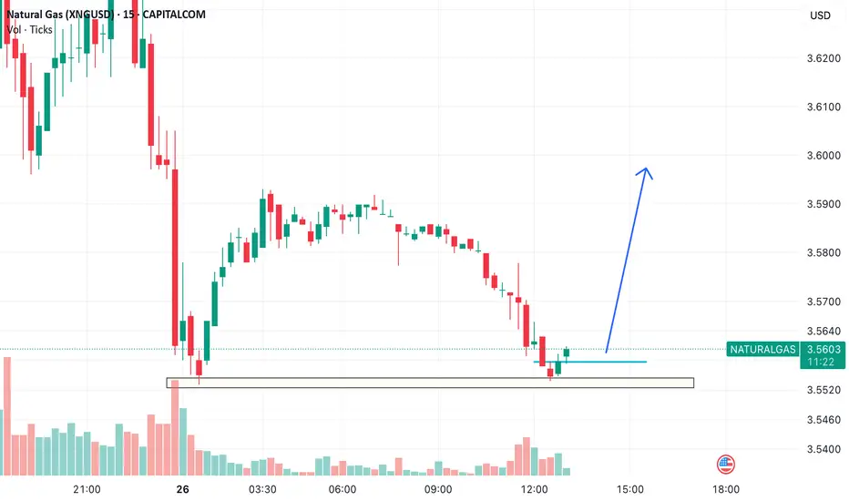 Despite relentless downward pressure, Natural Gas has landed into a previous demand pocket, holding the lows with surgical precision. A textbook case of seller exhaustion paired with invisible buying interest is unfolding on the 15-minute chart.